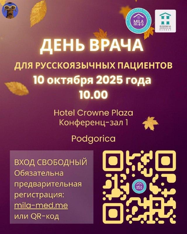 В пятницу, 10 октября в 10:00, в Подгорице пройдет встреча с врачами Черногории для русскоязычных пациентов.