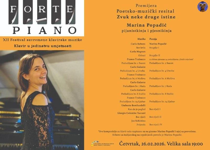 В четверг, 26 февраля, в Подгорице пройдет второй день фестиваля Forte piano.