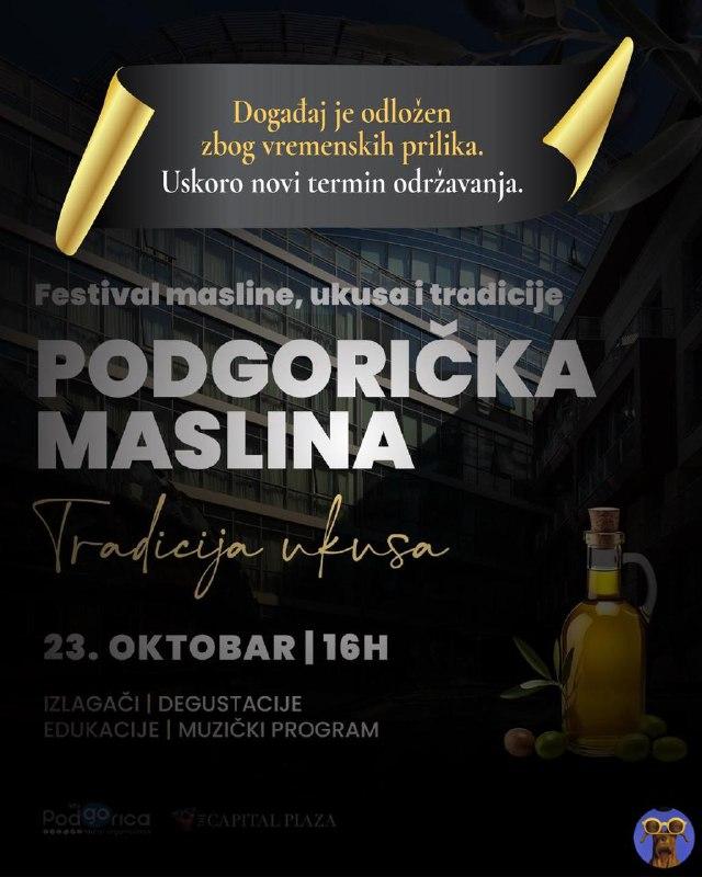 ☔️ Новая дата фестиваля Podgorička Maslina, который должен был пройти 23 октября в Подгорице, будет скоро объявлена.