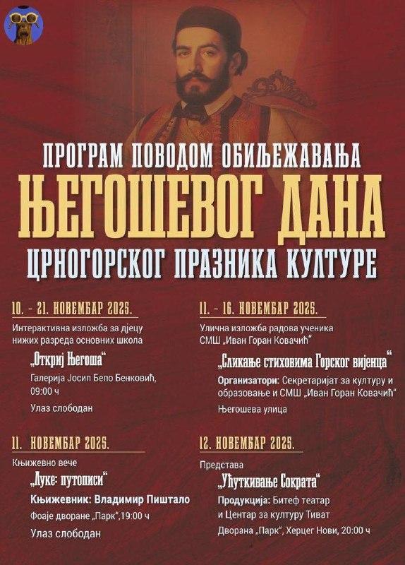 В честь черногорского Праздника культуры в Херцег-Нови пройдут выставки, лекции и спектакли, посвящённые личности и наследию Петра II Петровича Негоша.