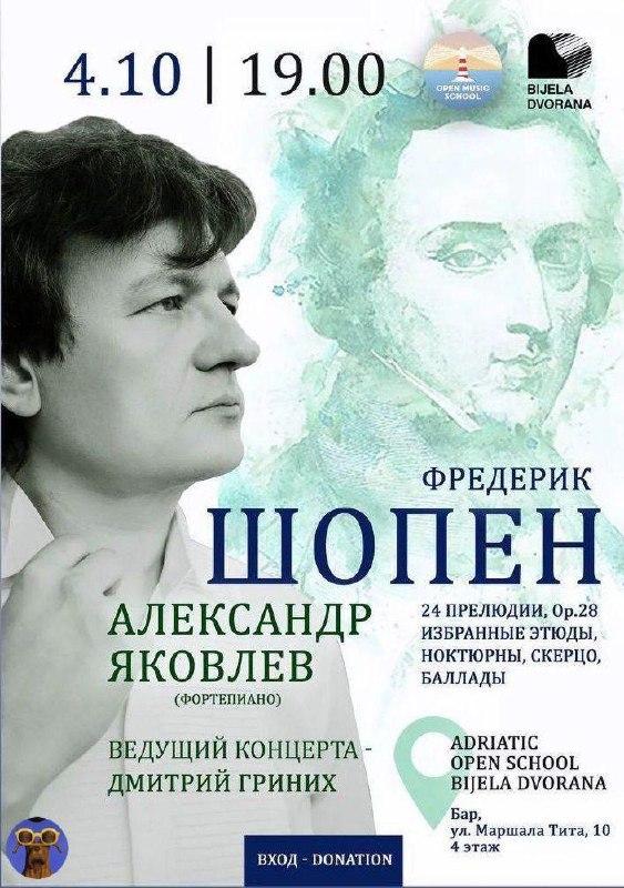 В субботу, 4 октября в 19:00, в Баре состоится вечер Фредерика Шопена.