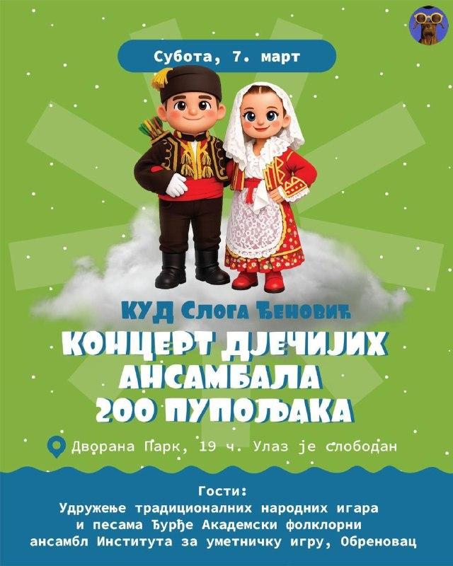 В программе — народные танцы и песни в исполнении юных участников; в гостях — Академический фольклорный ансамбль Института художественного танца (Белград).