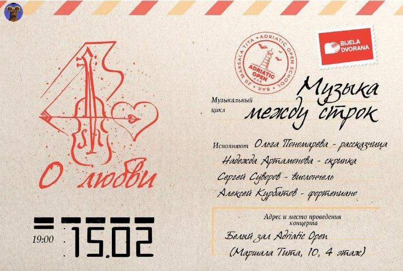 💗 Музыка, вдохновленная любовью, подарит вам чудесное настроение. Музыканты трио Arkus будут играть произведения Крейслера, Вагнера, Изаи, Франка и Курбатова, а рассказчица Ольга Пономарева поделится романтическими историями из жизни композиторов.