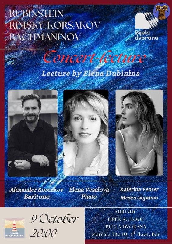 🎵 В этот вечер прозвучат знаменитые романсы и арии в исполнении лауреатов международных конкурсов — баритона Александра Коренкова, меццо-сопрано Екатерины Вентер и пианистки Елены Веселовой.