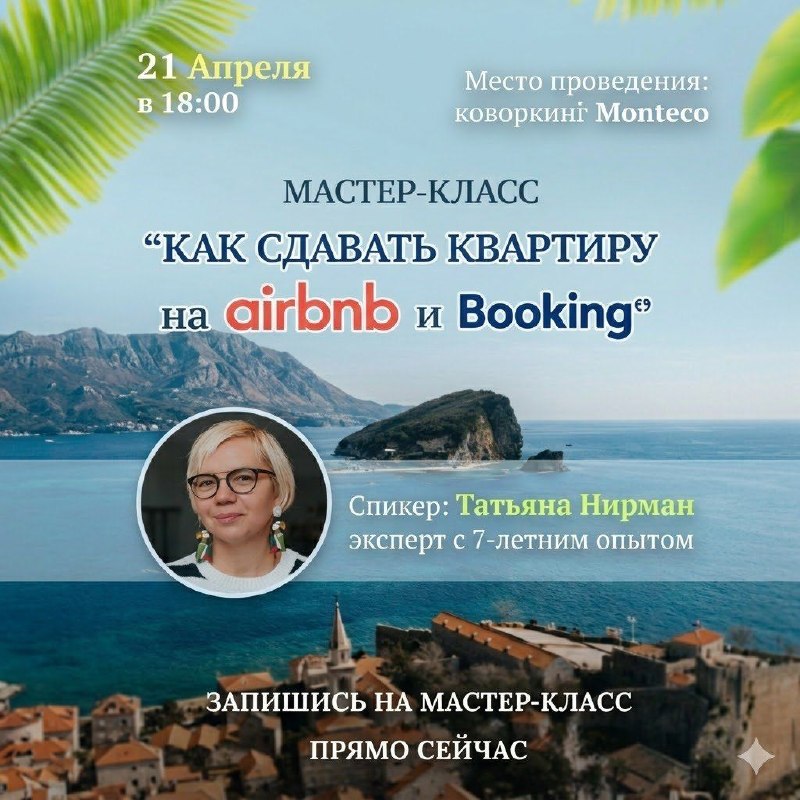 21 апреля приглашаю хозяев и управляющих апартаментами в Черногории на практический мастер-класс по Booking и Airbnb.