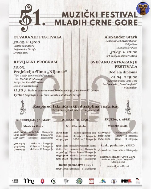 С 30 марта по 1 апреля в Цетинье пройдёт 51-й Музыкальный фестиваль молодёжи Черногории.