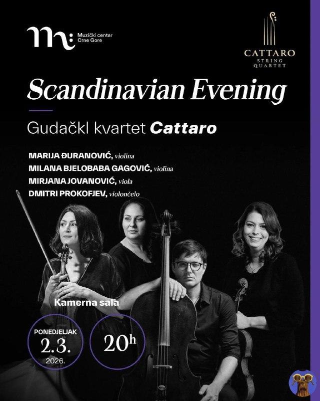 В понедельник, 2 марта в 20:00, в Подгорице пройдет концерт Scandinavian Evening — камерный вечер североевропейской классики в исполнении струнного квартета Cattaro.