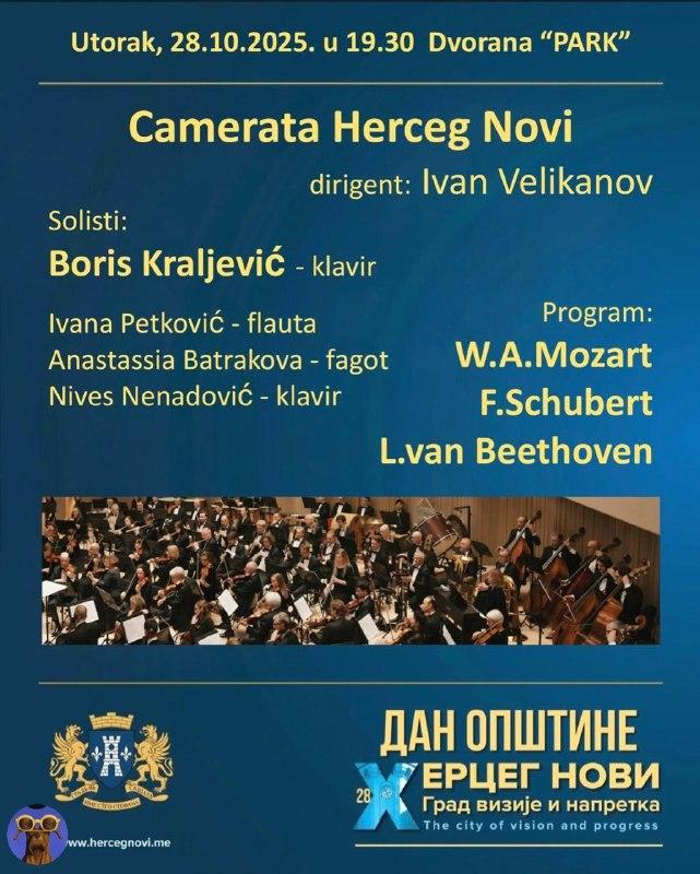 Во вторник, 28 октября в 19:30, в Херцег-Нови состоится концерт нового камерного оркестра Camerata Herceg Novi, под управлением дирижёра Ивана Великанова.