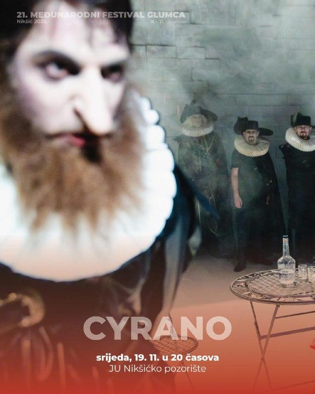 В среду, 19 ноября в 20:00, в Никшиче состоится спектакль «Сирано» по пьесе Эдмона Ростана в постановке Вито Тауфера.