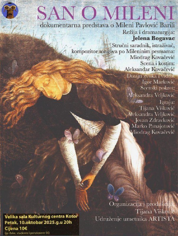 В пятницу, 10 октября в 20:00, в Которе состоится спектакль «Сон о Милене» — документально-поэтическая пьеса о художнице, поэтессе и сценографе Милене Павлович Барилли.