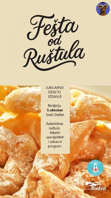 В воскресенье, 12 октября, в Свети-Стефан (Будва), состоится традиционный фестиваль руштулы (печенье «хворост»).